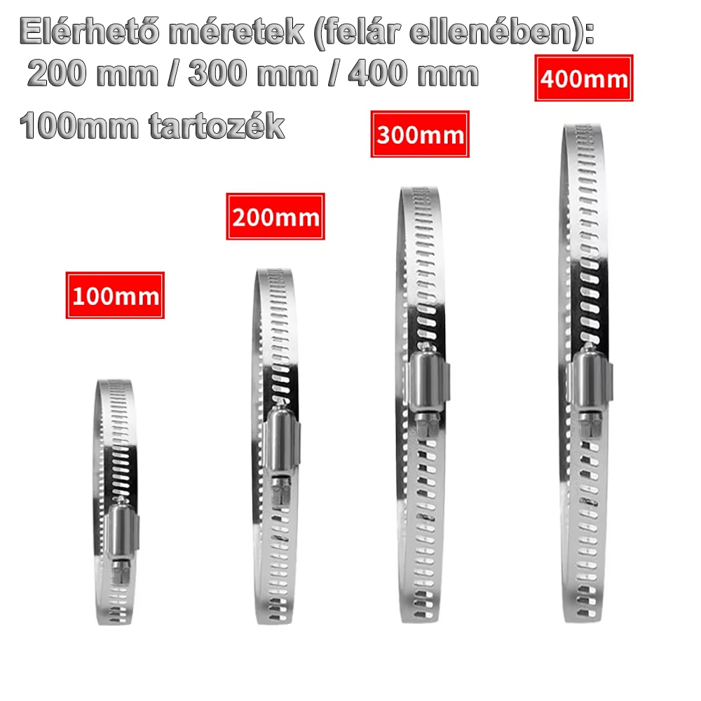 A csőbilincs hossza alapértelmezésben 10 cm , de a termék hosszabb változatokban elérhető :