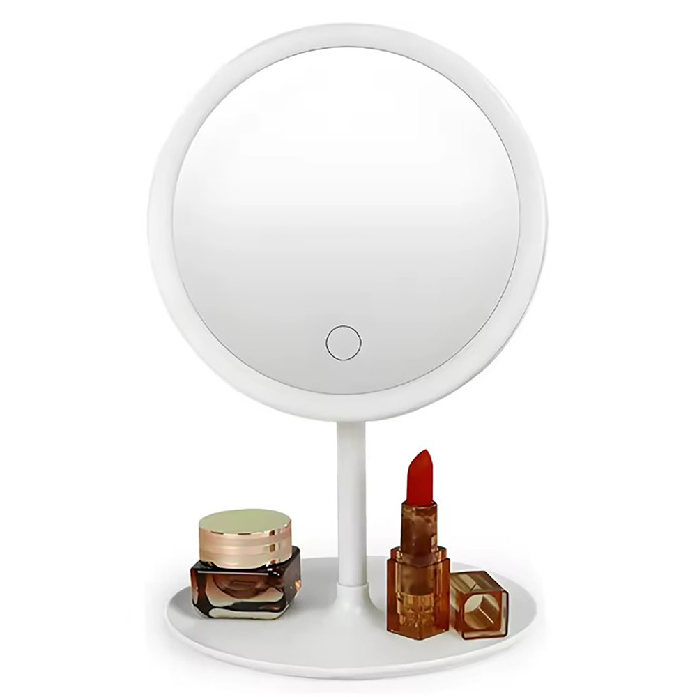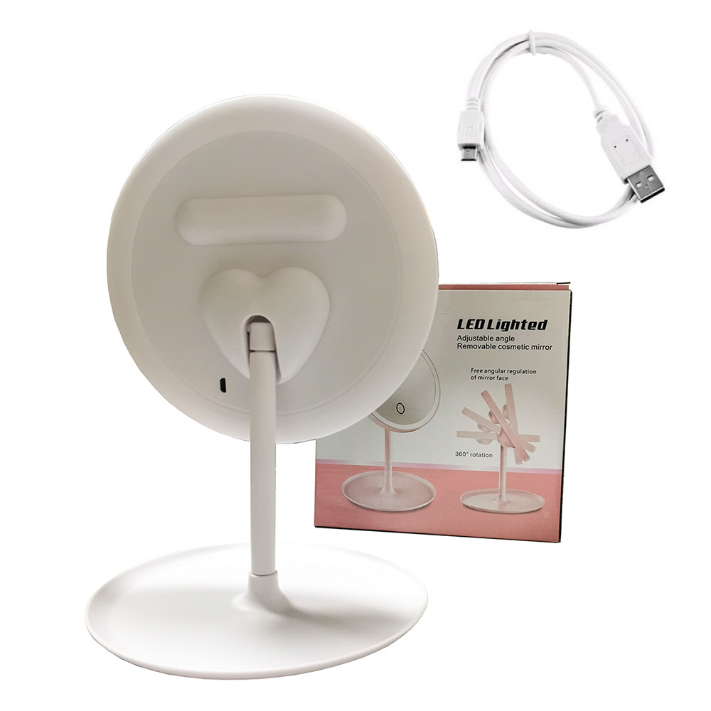 Sminktükör tárolótalppal, hordozható, újratölthető, kozmetikai tükör, 3 színű lámpával és állvánnyal, állítható fényerővel